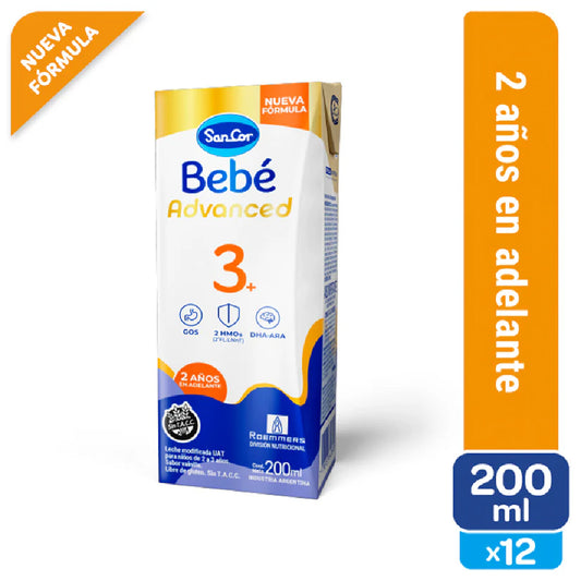 Sancor Bebé 3+ Advanced - 200ml X 12 Unidades - Nueva Fórmula